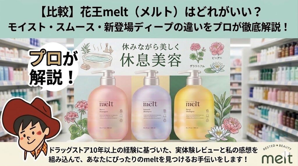 meltは「休みながら美しく」をコンセプトにした、花王の休息美容ブランドです。バスタイムという”毎日の休憩時間”に、サロン級のヘアケアを手軽に取り入れられるのが最大の魅力です。