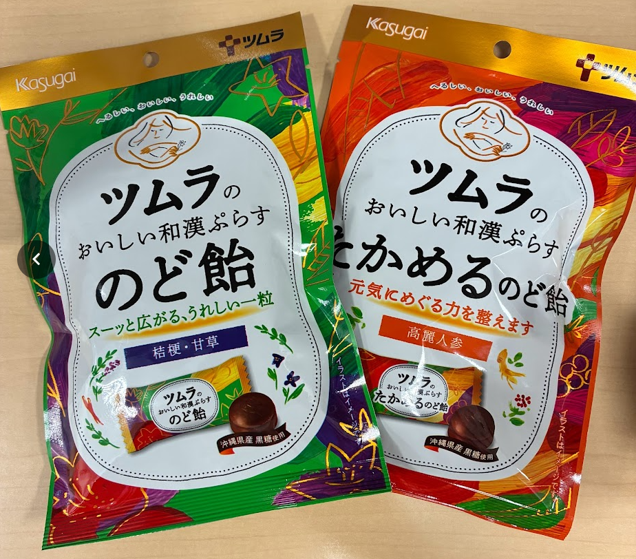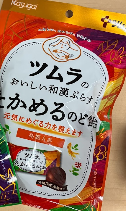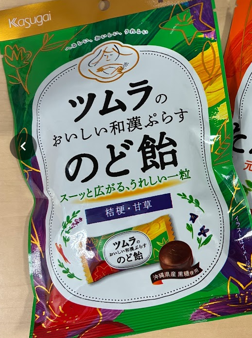 こだわりの和漢素材と沖縄県産の黒糖を使用した、菓子の老舗メーカー春日井製菓とツムラが共同開発した、のど飴に和漢の発想を「ぷらす」したのど飴です。
