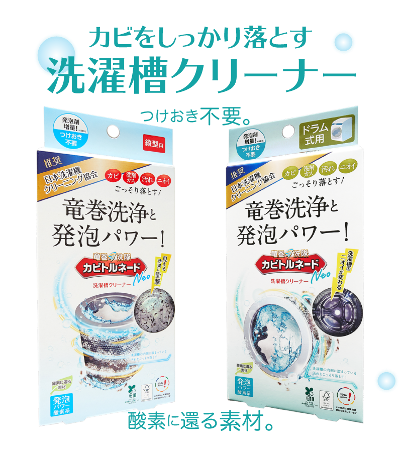 ドラム式タイプはB剤の量が増量されており、発泡力が向上しています。