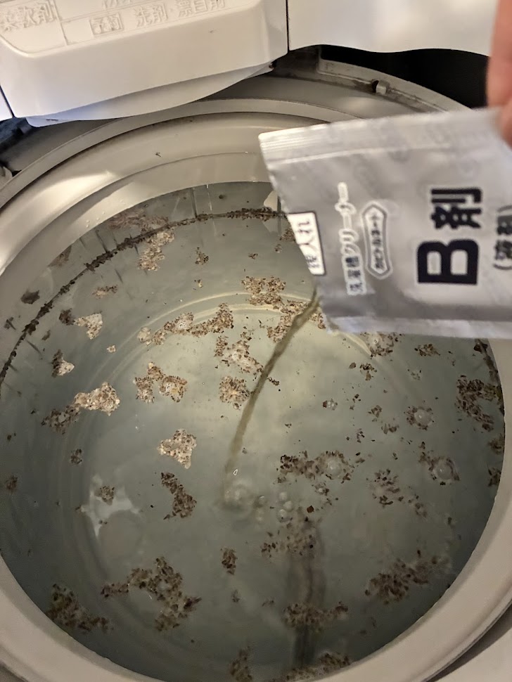 使い方は、「空の洗濯槽にA剤を入れる→15分洗い→一時停止してB剤を入れる→5分洗い→すすぎ→脱水」という流れになります。
